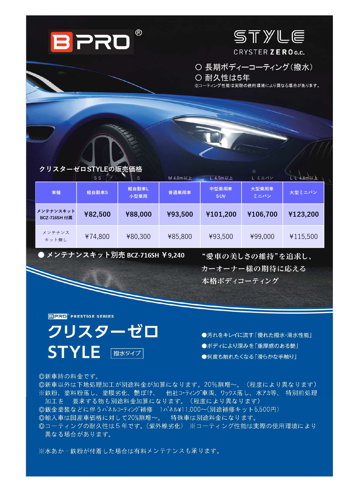 あなたの”愛車の美しさの維持”を追求する本格ボディーコーティング「クリスタ―ゼロSTYLE」
